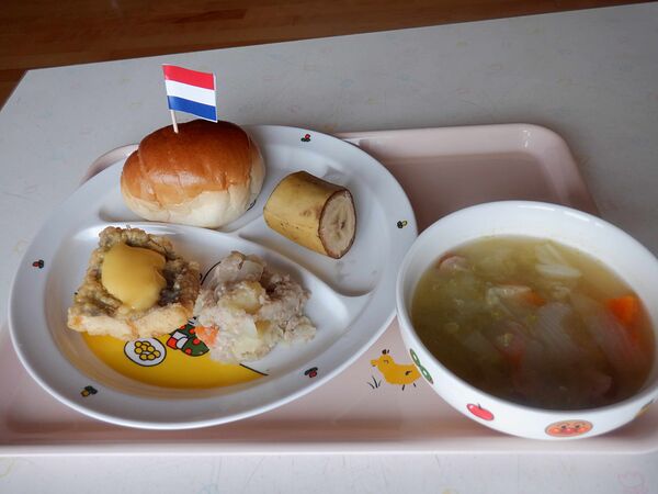 今月の誕生会の「世界の料理」は、オランダの料理でした。おいしかったね~!!