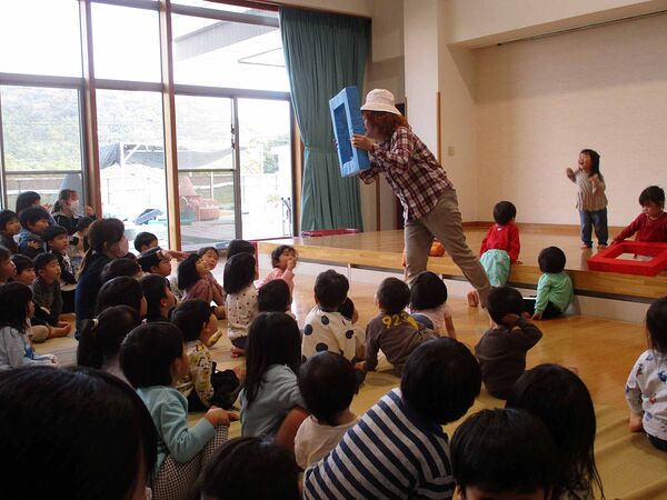 ゆめホールには、マニワ鮮魚さんが持ってこられた20種類以上の魚が並び、「お魚さんありがとう」の会が始まりました。最初に、お魚当てクイズがあり、「のどぐろはどれかなあ~?」「かわはぎは?」「これは何の魚?」と魚を見てまわりながら一生懸命考えていました。続いて、大きなブリの解体ショーを見た後、並べてある魚をさわったり、大きな魚やたこを友だちと一緒に持ち上げたりしていた子どもたちです。