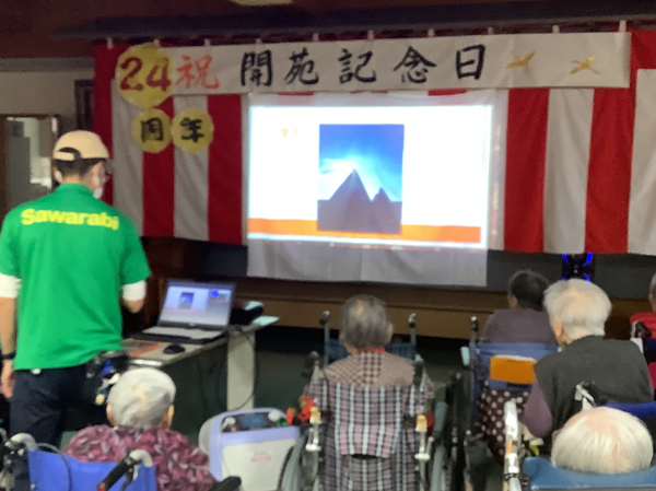 余興は、写真で大田市巡り。各町内をバスガイドが案内しました。