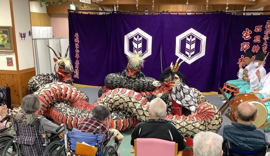 神楽を観て・神楽のお囃子を聞いて過ごしてこられたご利用者の皆様に