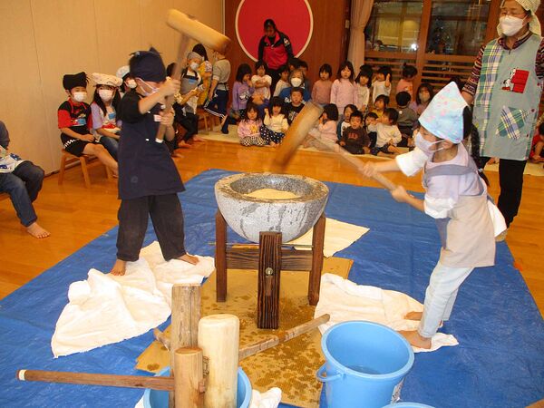 つきたてのお餅は、きなこ餅にして早速いただきました。「おいしいね!」「おかわり!」と言って喜んで食べていました。これで元気にお正月が迎えられるかな~?!