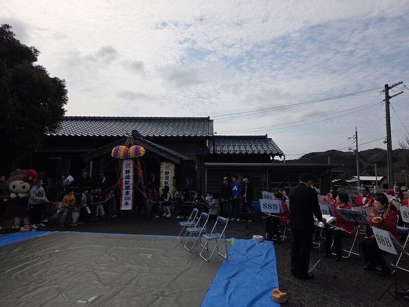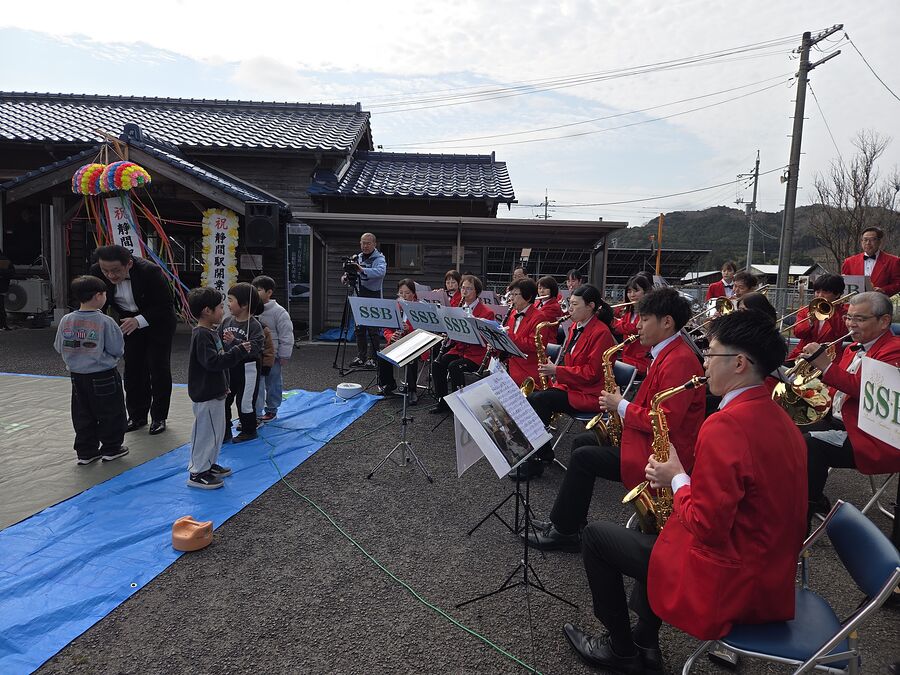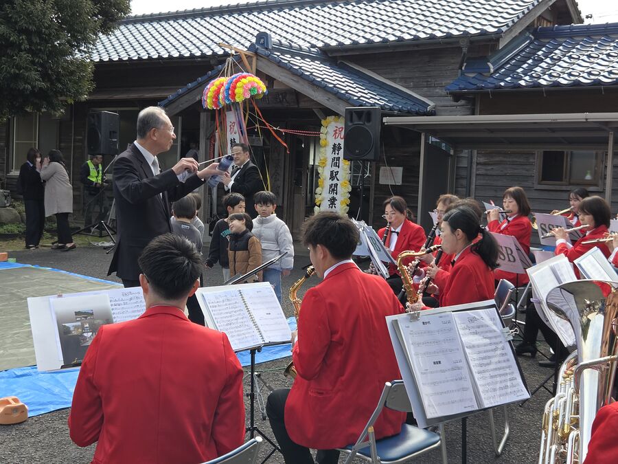 JR静間駅は、1926年(大正15)年9月16日、当時全国屈指の産地である石こうを輸送するために国会請願してできた駅です。その開業100年を記念するイベントにSSBが招かれ、盛大に織り上げることができ、地元の方々に喜んでいただきました。