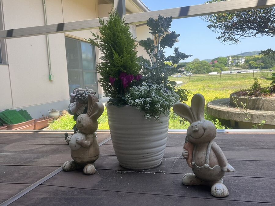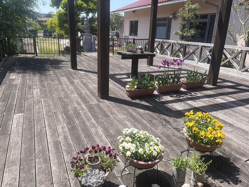 ゆうイングの玄関や庭には、キッチンの職員の手によって丹精込めて育てられた季節の花々が、咲き誇り、ご利用者や訪問の方々の目を楽しませてくれています。
