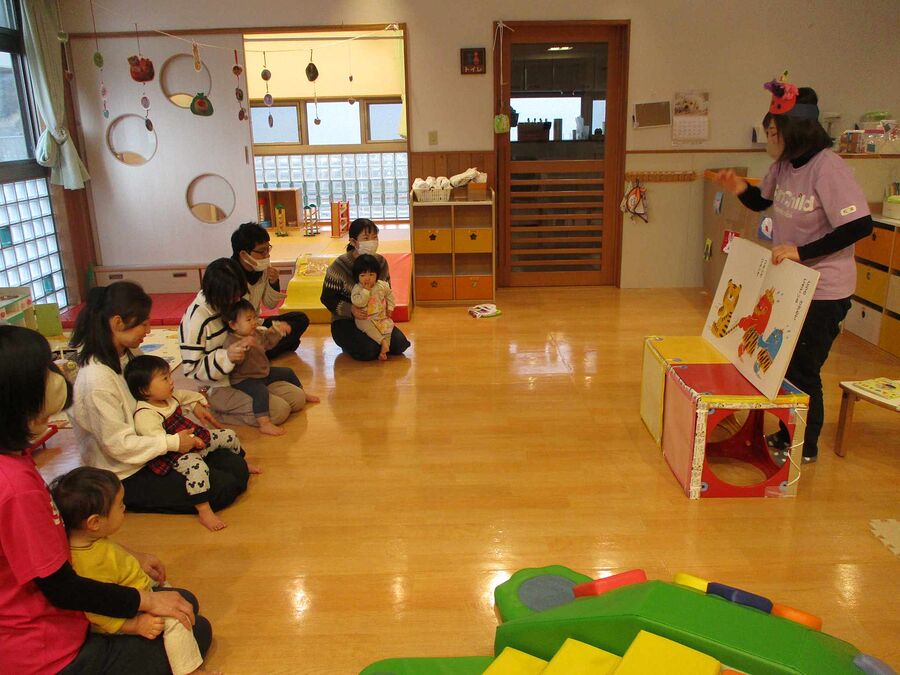 最強寒波で雪が舞う中でしたが、すくすく組のお部屋は、親子で温かいふれあいの時間を持つことができました。