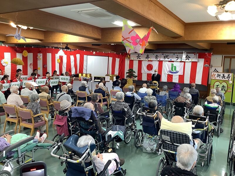 今年ゆうイングさわらびは、百歳を迎える方が一名、会の中では、どうしても参列されることが叶わなかった娘様からの心温まるメッセージを職員が感涙に咽びながら披露致しました。また、デイサービスのご利用者の方も百歳に到達された方が、一名いらっしゃり、息子様が参列され、ともにお祝いをして頂きました。