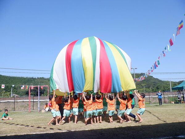 その後、玉入れや、クラス競技、親子競技、5歳児のバルーン、リレーなど全力で頑張る姿に、会場からは大きな拍手と歓声が沸き上がっていました。そして、保護者競技では、様々なミッションをクリアしておもしろく仮装した姿に、大人も子供も大盛り上がりで、とても楽しい運動会となりました。