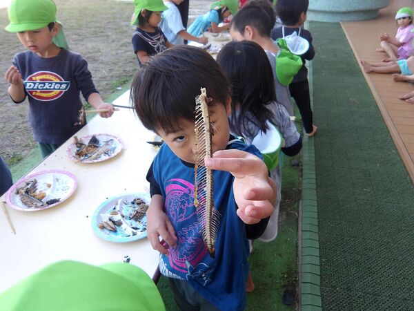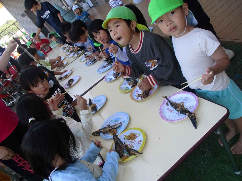 「おいしい!」と言って、頭まで食べてしまう子もいました。おいしい匂いに誘われて、サンシルバーから理事長先生も来られ、子どもたちと一緒においしい秋を満喫されました。やっぱり秋と言えばサンマですね!