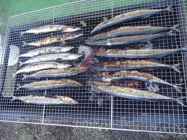 爽やかな秋の風が吹く園庭で、「サンマ焼き」をしました。